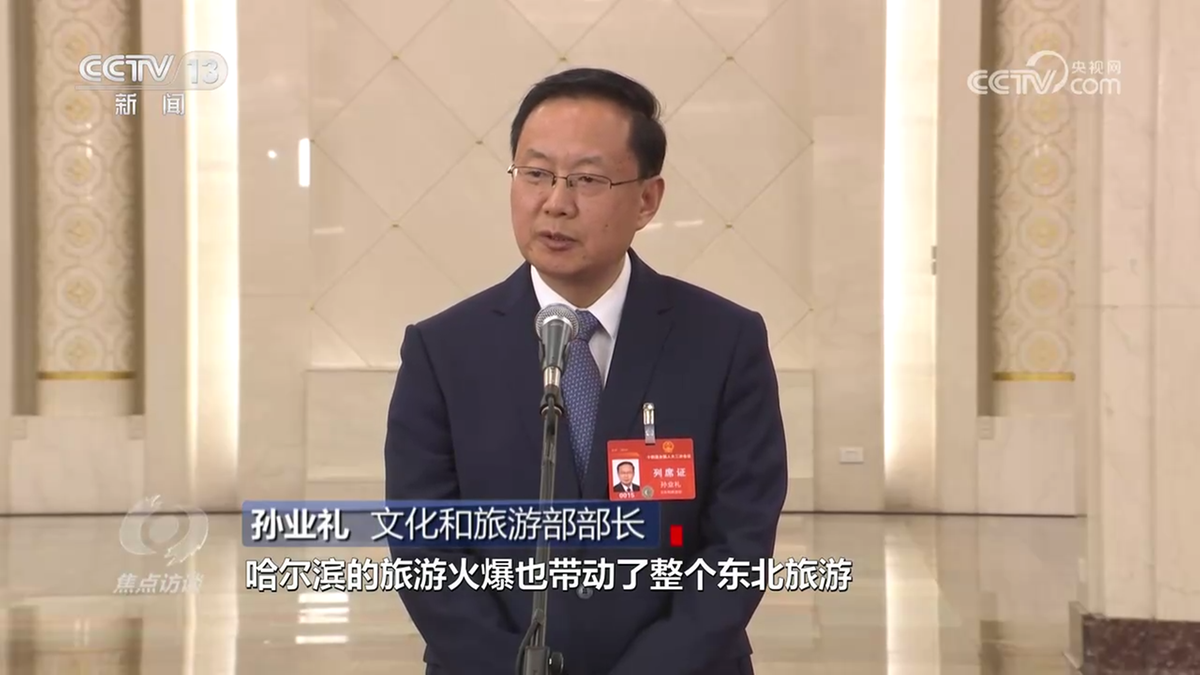 3月7日,黑龍江代表團(tuán)舉行開(kāi)放團(tuán)組活動(dòng),受到不少媒體關(guān)注?!暗胶邶埥w驗(yàn)和感受哈爾濱的熱度”是很多記者前來(lái)采訪(fǎng)的原因。剛剛過(guò)去的這個(gè)冬天,“冰城”哈爾濱一片火熱氛圍,冬季北國(guó)風(fēng)光,配上熱情周到細(xì)致大方的服務(wù),吸引了無(wú)數(shù)游客競(jìng)相前往?!盃枮I”也由此出圈。數(shù)據(jù)顯示,今年春節(jié)期間,哈爾濱累計(jì)接待游客1009.3萬(wàn)人次,日均同比增長(zhǎng)81.7%;實(shí)現(xiàn)旅游總收入164.2億元。在今天(3月11日)的“部長(zhǎng)通道”上,文化和旅游部部長(zhǎng)孫業(yè)禮也談到了冬季旅游的火爆現(xiàn)象。